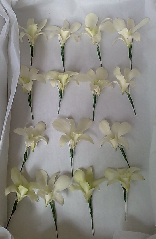 Cake flowers: the last thing on the list was to make a small cake arrangement of white singapore orchids to sit in the corner of the cake